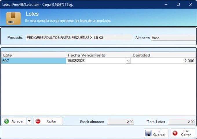 Carga de número de lote, serie y vencimiento en productos